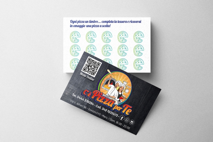 - i biglietti da visita con la raccolta dei timbri per le pizze sul retro;